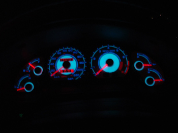 Probeforum in den USA hergestellter Plasmatacho ersetzt den serienmäßigen Tacho in meinem Probe. Statt der normalen grünen Zahlen auf schwarzem Hintergrund leuchtet es nun blau aus dem Cockpit. Die Beleuchtungensmodi lassen sich einfach durch vier Taster variieren und können somit optimal den weiteren Beleuchtungen im Wagen angepasst werden.